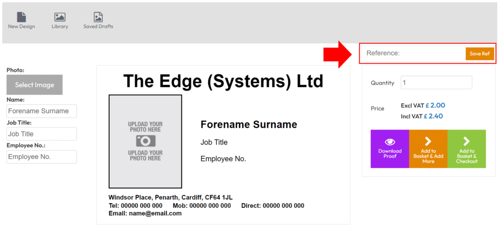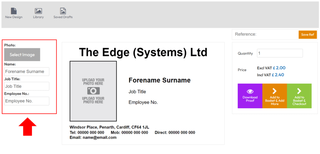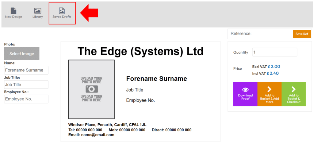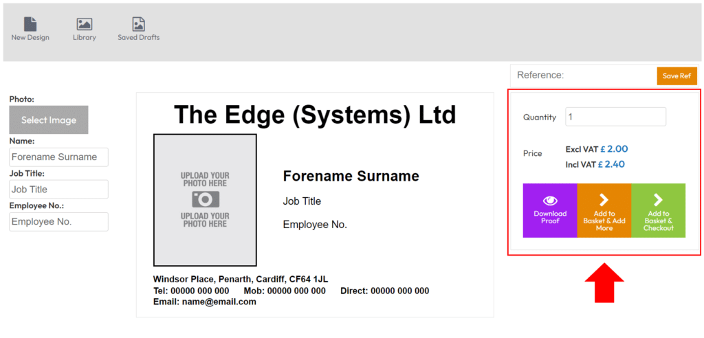 - Download Proof – download a PDF ‘PROOF’ of your design